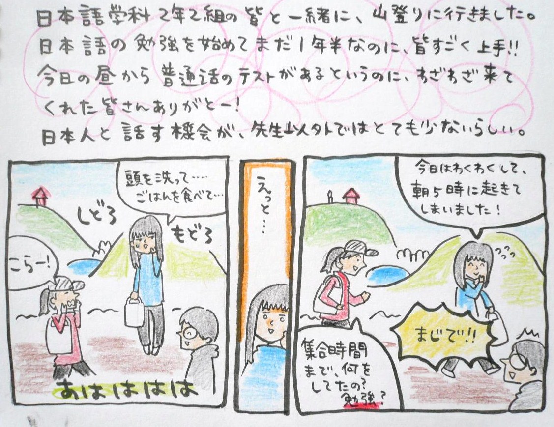 先日、登山をした時に知り合った日本語学科の2年生です。